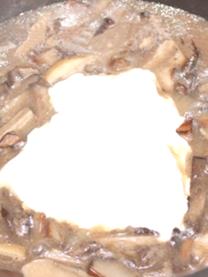 - Verser la farine, diluer 1 cuillère à soupe. bouillon de champignons, saler et poivrer.