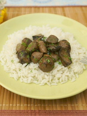 La recette pour la cuisson des boletus de bonnet congelés avec du riz