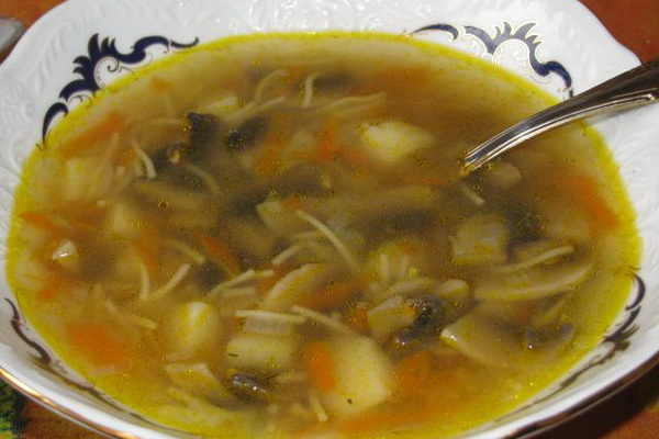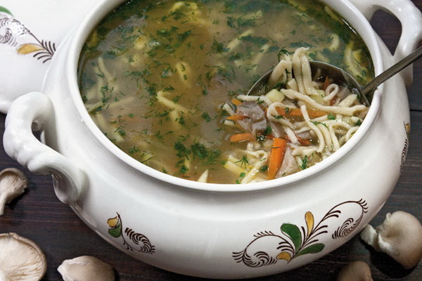 - La recette pour la cuisson de la soupe aux champignons avec des pleurotes et des nouilles