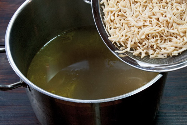 Pour préparer la soupe rapidement, le bouillon de poulet doit déjà être cuit à l'avance.