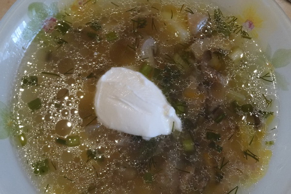 Pour servir la soupe à votre famille, mettez 1 c. À soupe dans chaque assiette. l crème sure ou mayonnaise.
