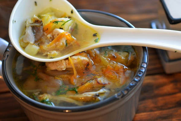 Nous suggérons d’utiliser une recette de soupe aux champignons à partir de pleurotes avec une photo cuite à la tomate.