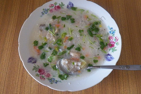 Avant de retirer la soupe du feu, ajoutez-y des feuilles de légumes hachées et laissez reposer 15 minutes.