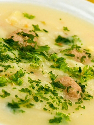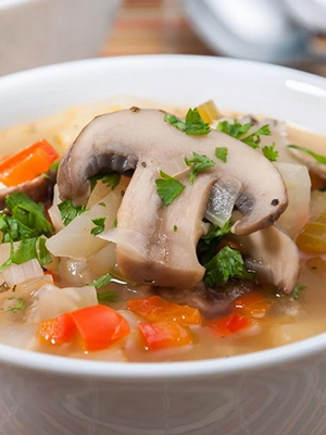 Avant de servir la soupe aux champignons et aux champignons sur un bouillon de légumes préparé selon cette recette, saupoudrer de persil haché.