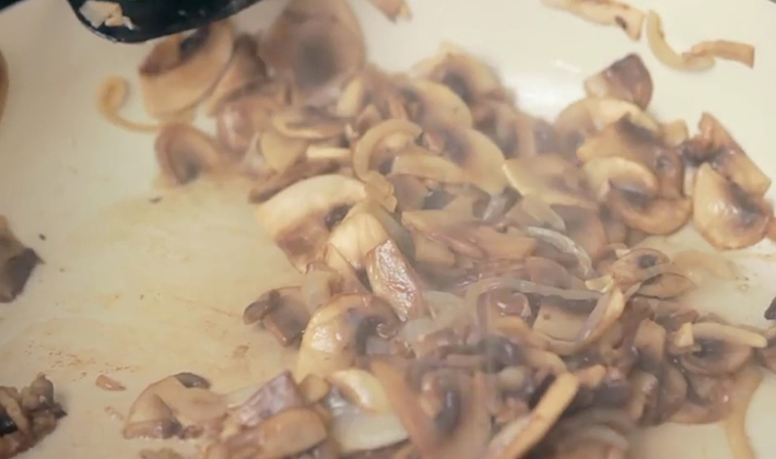 - Lavez les champignons, passez dans un hachoir à viande, puis faites les mijoter dans l'huile (avec les oignons râpés) pendant 10 minutes à feu doux. Puis versez la farine, versez le bouillon et mettez les assaisonnements.