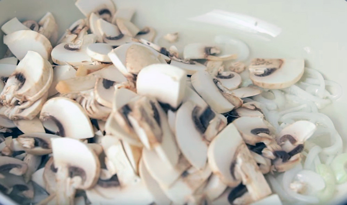 - Ajoutez des champignons pré-pelés, lavés et tranchés.