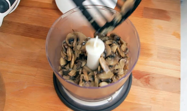 - Mettez les haricots, les oignons et les champignons dans un bol mixeur et hachez-les à la consistance crémeuse.