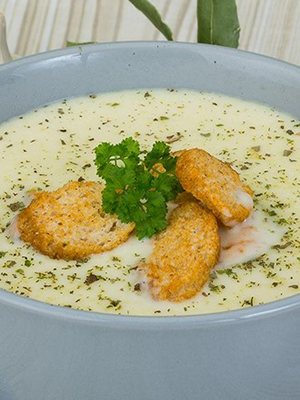 - Servir la soupe en portions avec des croûtons à l'ail ajoutés à chacun.