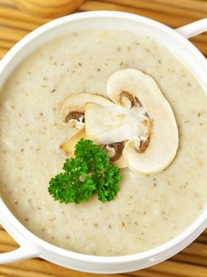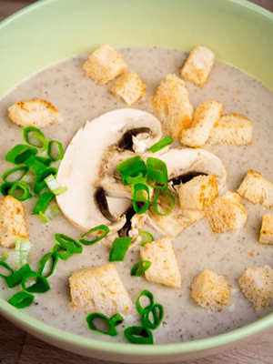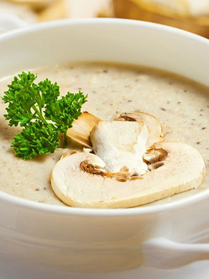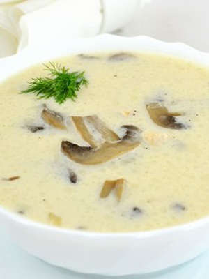 La soupe à la crème de champignon préparée dans un bouillon de poulet s'avère très riche, mais à la fois légère et agréable à déguster.