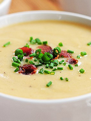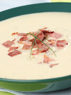 - Retirer du feu, saupoudrer de lardons hachés et servir.