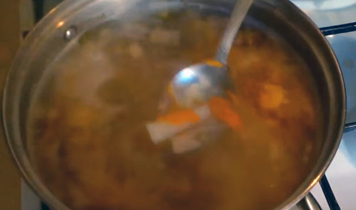 Eteignez le feu, laissez la soupe dans une casserole sous un couvercle fermé pendant 10 minutes pour insister.
