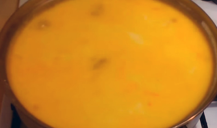 - Faire bouillir pendant 10 minutes, saler au goût, verser la crème, bien mélanger et porter à ébullition, mais ne pas faire bouillir.