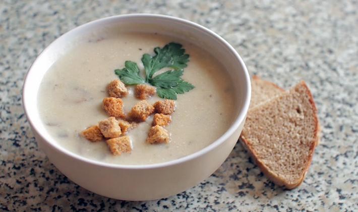 La prochaine option sera intéressante pour ceux qui aiment une soupe crémeuse. La recette d'une soupe crémeuse à base de champignons, vous allez certainement l'écrire dans votre cahier de prescriptions.