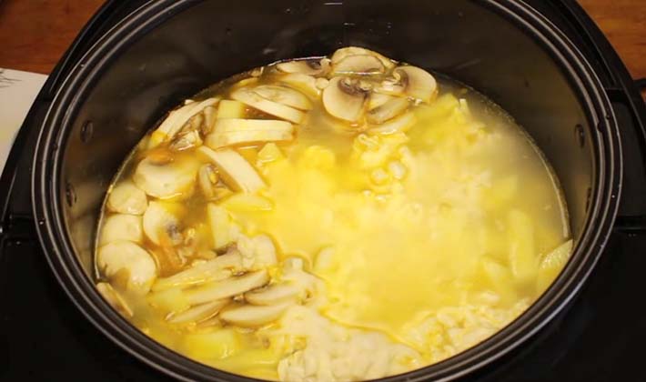 - Faites cuire la soupe au champignon dans une mijoteuse en mode «Cuisson» pendant 10 min.