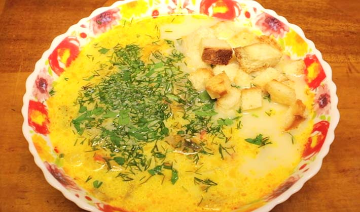 - Verser la soupe au fromage dans des assiettes, bien mélanger et servir.