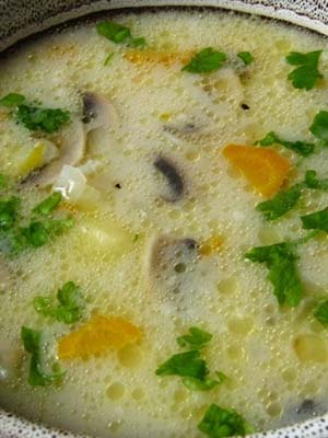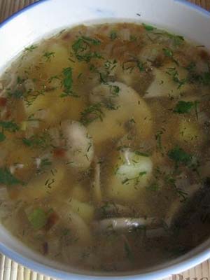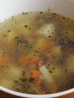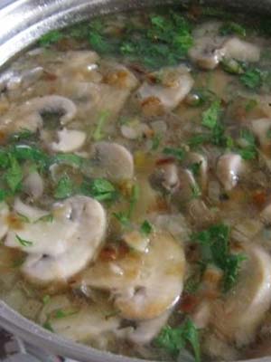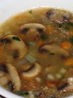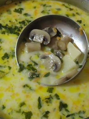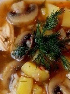 - Pour préparer une soupe aux champignons préparée selon cette recette dans une cocotte minute, servir des légumes et des croûtons finement hachés.
