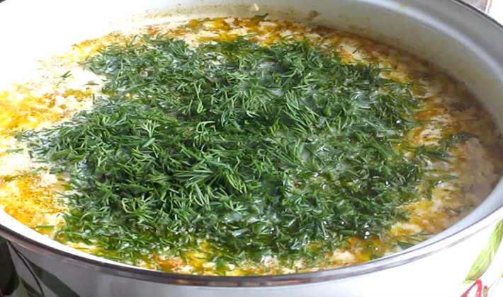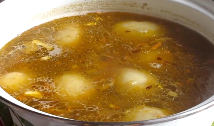 Il est introduit dans la soupe et laissé bouillir pendant 10 minutes.