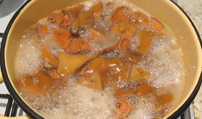 Les champignons sont nettoyés, lavés et bouillis pendant 15 minutes. dans de l'eau bouillante à feu moyen.