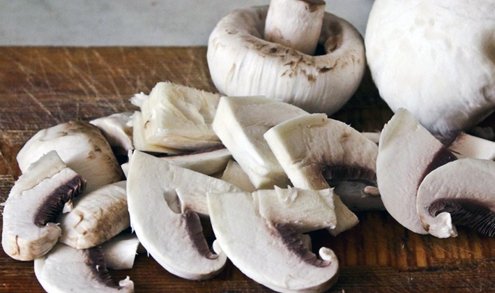 - Lavez les champignons sous un filet d'eau froide, coupez-en les gros morceaux. Ajouter à la casserole en remuant, de sorte qu'ils soient tous recouverts d'huile.
