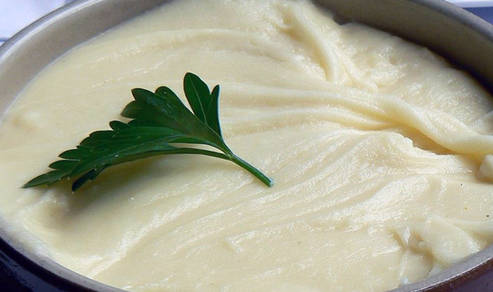 - Saupoudrez le plat fini de persil finement haché, ajoutez le fromage fondu broyé et versez le lait chaud.