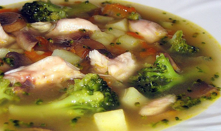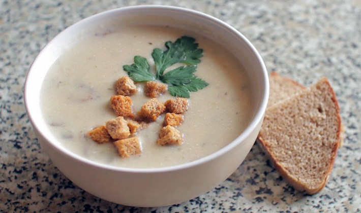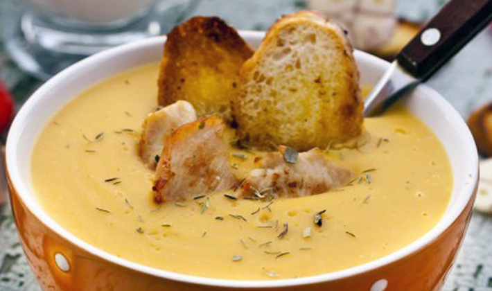 - Recette de soupe au fromage avec champignons, poulet et croûtons