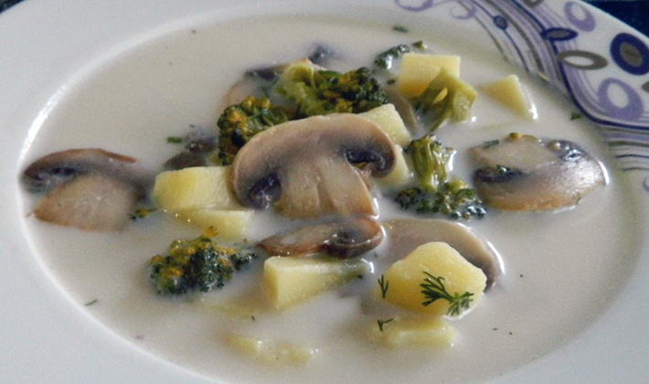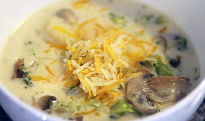 - Une recette pour une délicieuse soupe au fromage avec des champignons et du brocoli.