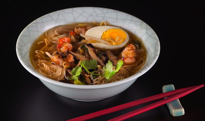 - Soupe au fromage avec champignons, spaghettis et poulet émincé