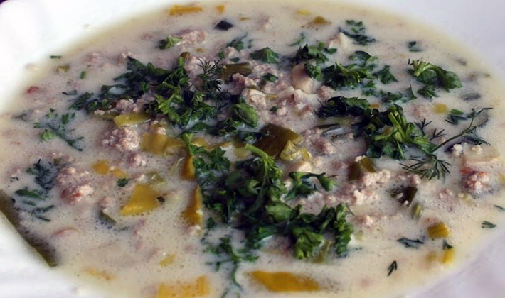 - Soupe au fromage avec des champignons en conserve, des pommes de terre et de l'orge