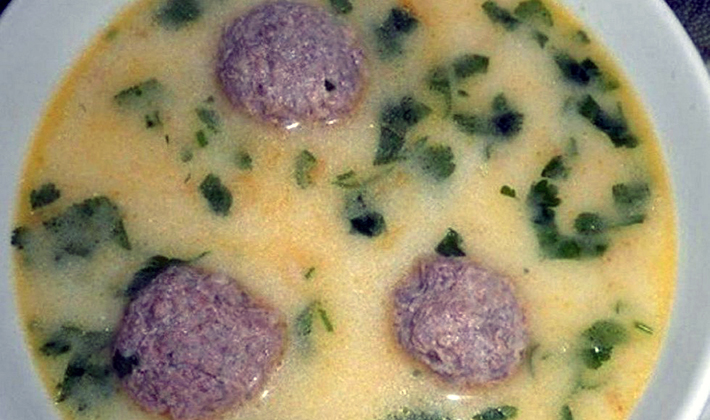 - Soupe au fromage avec champignons, boulettes de viande et carottes
