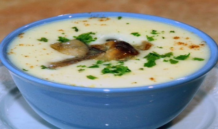 - Soupe au fromage avec champignons et crème sur bouillon de viande