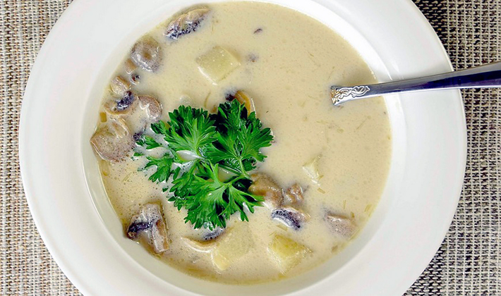 Une soupe aux champignons à base de champignons avec du fromage et de la crème est une excellente option pour un repas copieux.