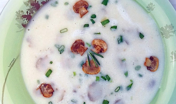 Soupe de champignon fraîche aux pommes de terre et au poulet