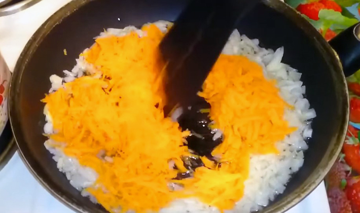 Tout d'abord, faites revenir les oignons et les carottes dans l'huile de tournesol jusqu'à ce qu'ils soient tendres.