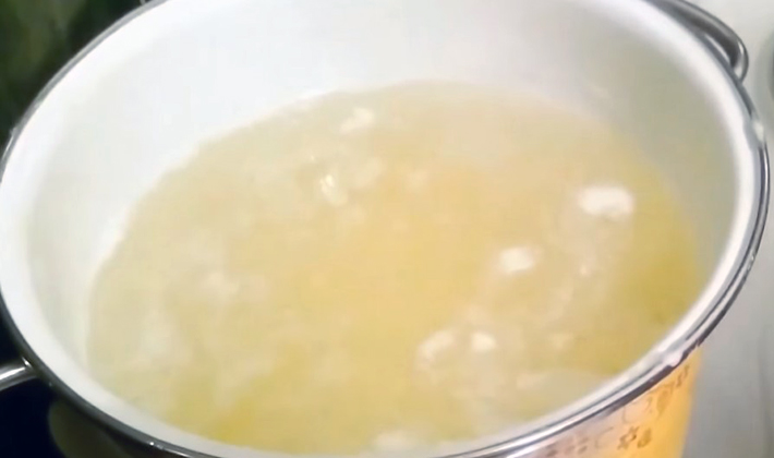 - Il est étendu dans l'eau et bouilli jusqu'à tendreté.