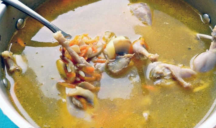 - Soupe de champignon fraîche aux pommes de terre et au poulet