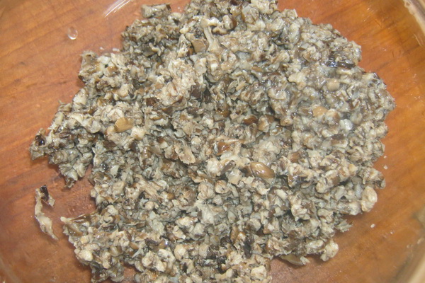 Laisser les champignons refroidir et les broyer dans un hachoir à viande.
