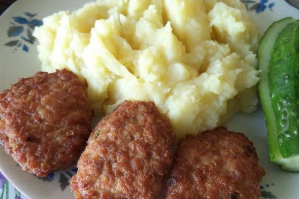 La structure des boulettes de viande cuites s'avère friable, comme dans les boulettes de viande conventionnelles. Il est préférable de servir ces côtelettes sur la table avec une salade de chou blanc et de poivron.