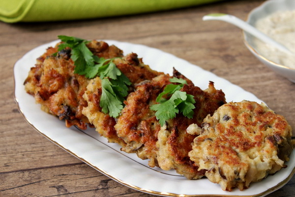 Les côtelettes de champignons sont mieux servies froides. Ils peuvent être servis avec de la crème sure et garnis de feuilles de coriandre verte.