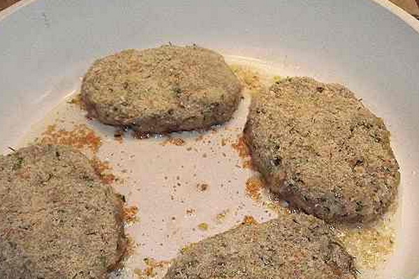 Faites chauffer une poêle avec un peu d'huile, formez des galettes à partir de la viande obtenue et faites-les frire jusqu'à ce qu'elles soient dorées des deux côtés.