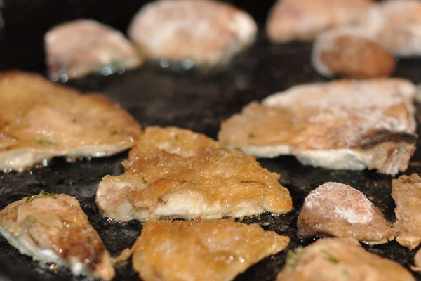 Frire chaque morceau des deux côtés jusqu'à coloration dorée et peut être servi.