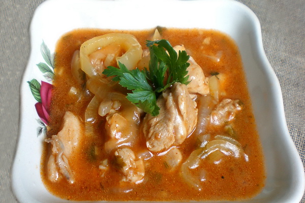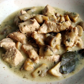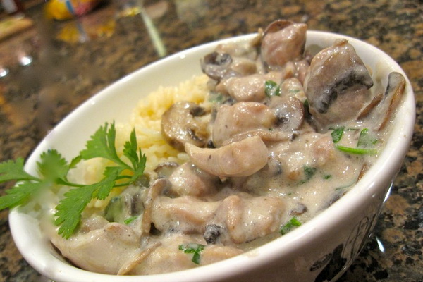 - Goulache de poulet aux champignons dans une recette de crème sure