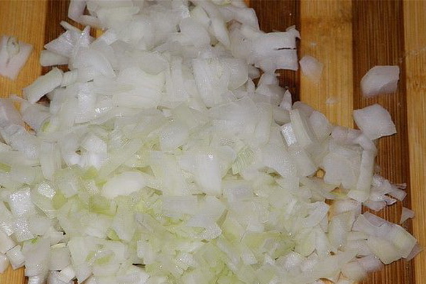 1. Hachez finement l'oignon en cubes, et envoyez le dans une poêle préchauffée avec de l’huile de tournesol.