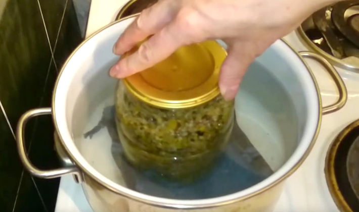- Ensuite, il est transféré dans des pots et stérilisé pendant 30 minutes. après ébullition