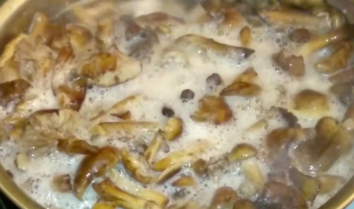 - Frire pendant 2 minutes, puis on ajoute du poivre et après 3-4 minutes. les champignons sont introduits.