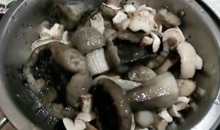 Laisser les champignons égoutter et refroidir, puis les incorporer dans un hachoir à viande.