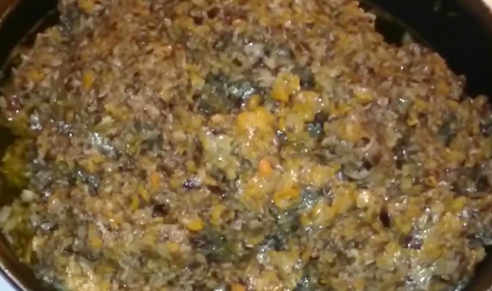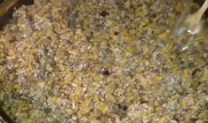 - La masse entière est tordue dans un hachoir à viande et disposée à nouveau dans la casserole.