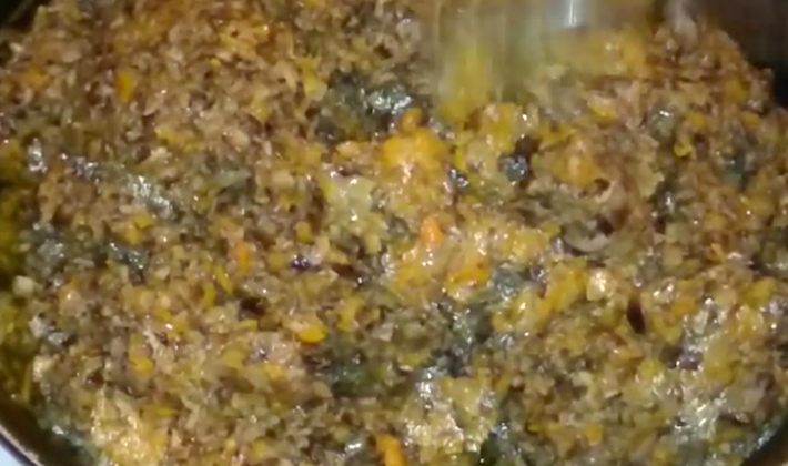 - Faire frire dans l'huile végétale jusqu'à tendreté et mélanger avec les champignons.