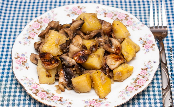 Tout d'abord, apprenez à cuisiner des pommes de terre avec des champignons pour de délicieux en-cas.
