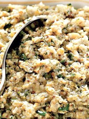 - Laissez cuire 20 minutes, ajoutez les pommes de terre hachées, puis préparez la vinaigrette.