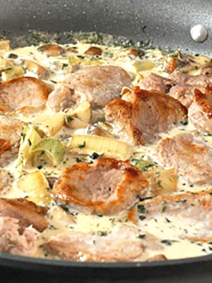 - Verser la crème sure, laisser mijoter avec le couvercle fermé pendant 10 minutes.